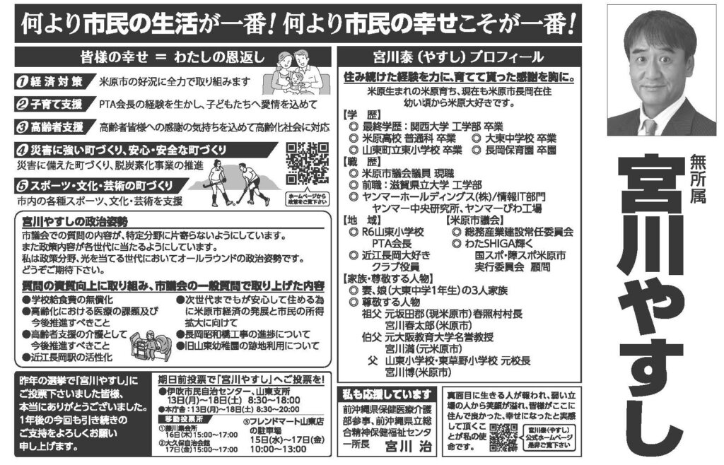 <選挙公報>宮川やすし・米原市議会議員選挙 是非ご覧下さい!